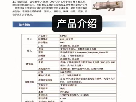 KBA12矿用高清不锈钢摄影仪-矿用本安型摄像仪